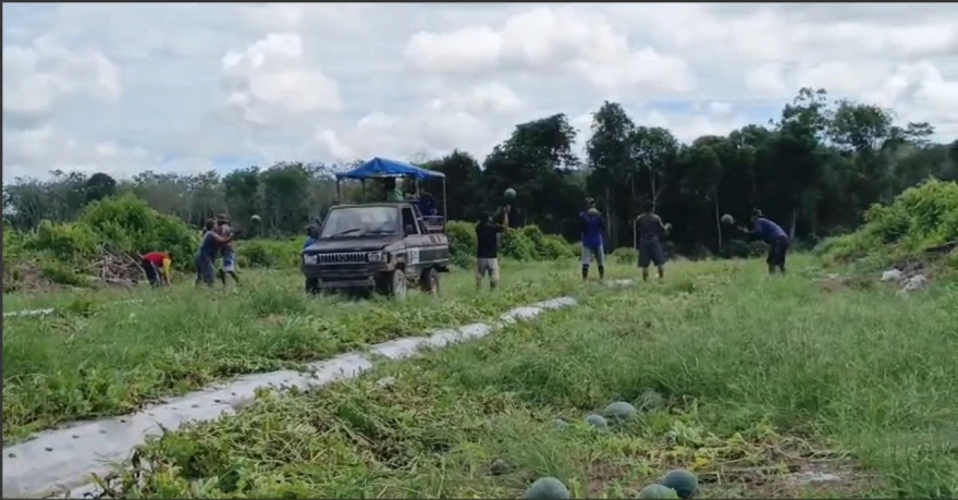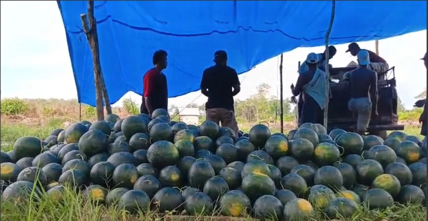 Petani Semangka di Desa Sido Mulyo mulai memanen hasi kebun mereka.